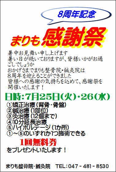 おかげさまでまりも整骨院・鍼灸院は8周年を迎えることができました
